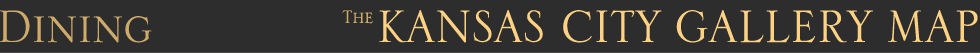 | The Kansas City Gallery Map is an online resource that shows you the locations of art galleries and related spaces in the greater Kansas City area. Plus, art-related events and public art installations. This particular map (above) and directory (below) relates to DINING ESTABLISHMENTS in the Kansas City area. All entries are arranged from North to South. This is a sampling of top-rated venues by food critics, online reviews, and personal recommendations by locals. It is by no means a complete list of every good place to eat. But it will help get you started. Be sure to use the interactive MAP ABOVE and LISTS BELOW to get the most from your personal exploration of Kansas City. |
