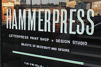 Hammerpress Studio(letterpress studio with retail area) from website - "Hammerpress is a letterpress print shop and design studio located in Kansas City, Missouri. We make all kinds of letterpress cards, stationery, ephemera, show posters and art prints here in our studio in the Crossroads Arts District. Our store front is a hand-crafted retail space offering all our letterpress products alongside a curated selection of home goods, desk supplies and personal accessories. On a visit to Hammerpress, you may overhear the presses clanking, peer into the print shop in operation and take in the nostalgic scent of ink and paper. Here in our studio, we design and print each one of our letterpress cards and prints. We also offer custom letterpress printing and design services, which can include business cards, identity development, personal stationery, wedding suites and event invitations. For more about our custom services and to request a quote, head over to our Custom page." |